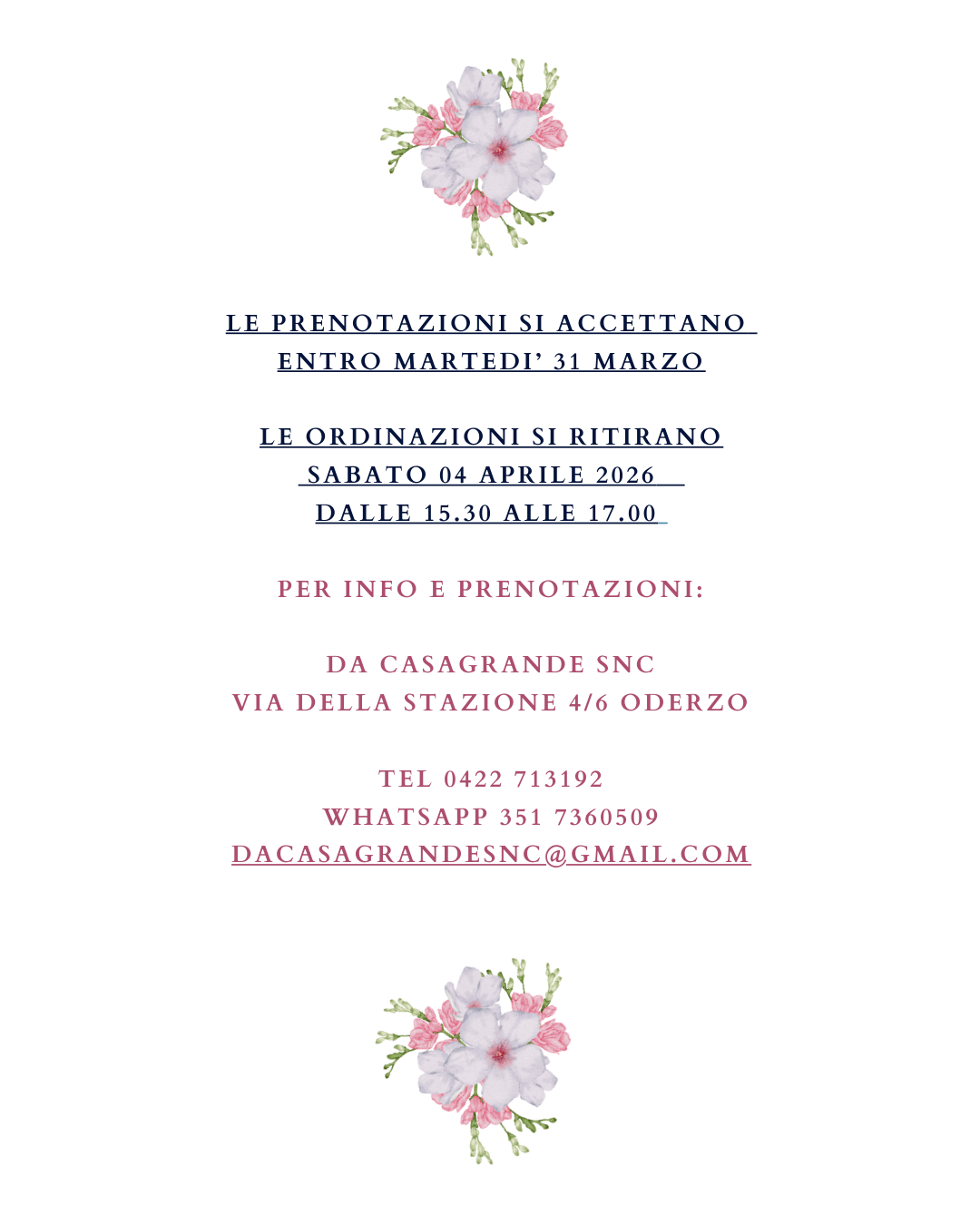 MENU DI PASQUA 2026